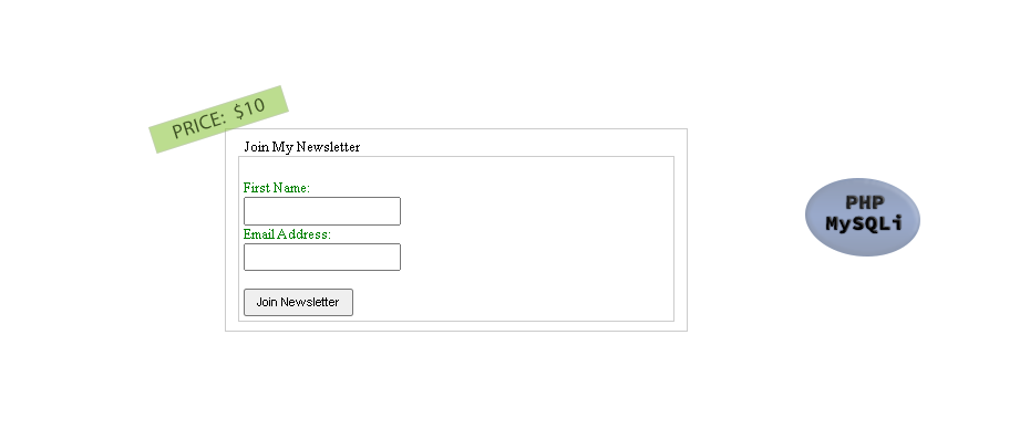 Description: Form inserts vistors Name and Email Address into database.